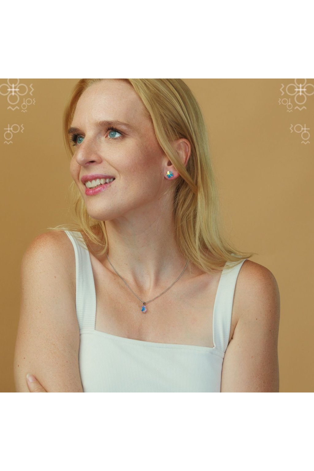 Klasické ručně vyráběné náušnice zdobené českými krystaly v čiré barvě Crystal AB (duhová). Naušnice Kytička svou jemností doplní každý outfit. Velikost kytičky je 1cm. Náušnice se zapínají přes titanový dřík přímo do ucha se zarážkou ze zdravotně nezávadného silikonu. Náušnice mají povrchovou úpravu Platina, která jim dodává charakteristický vzhled. Tato úprava výrazně zvyšuje životnost šperku, nečerná, a navíc je hypoalergenní. Výrobek od nás obdržíte zabalený v elegantní dárkové krabičce společně s certifikátem dokládajícím původ šperku a návodem, jak o něj správně pečovat. Vyrobeno v Jablonci nad Nisou firmou HGM.