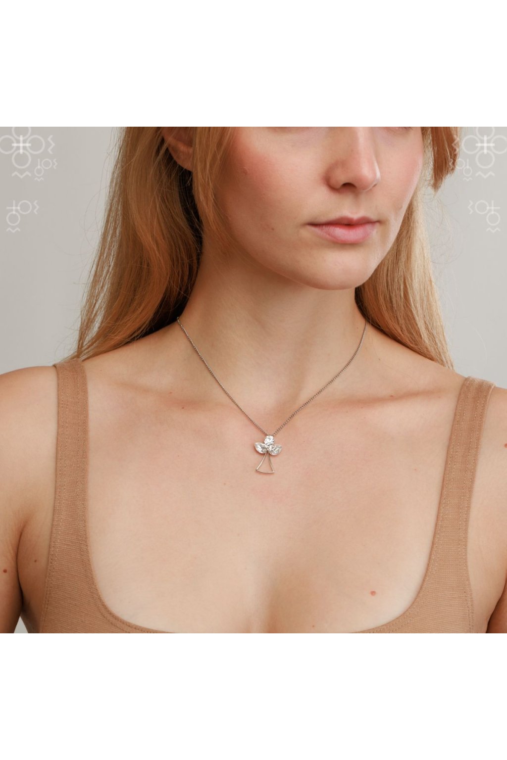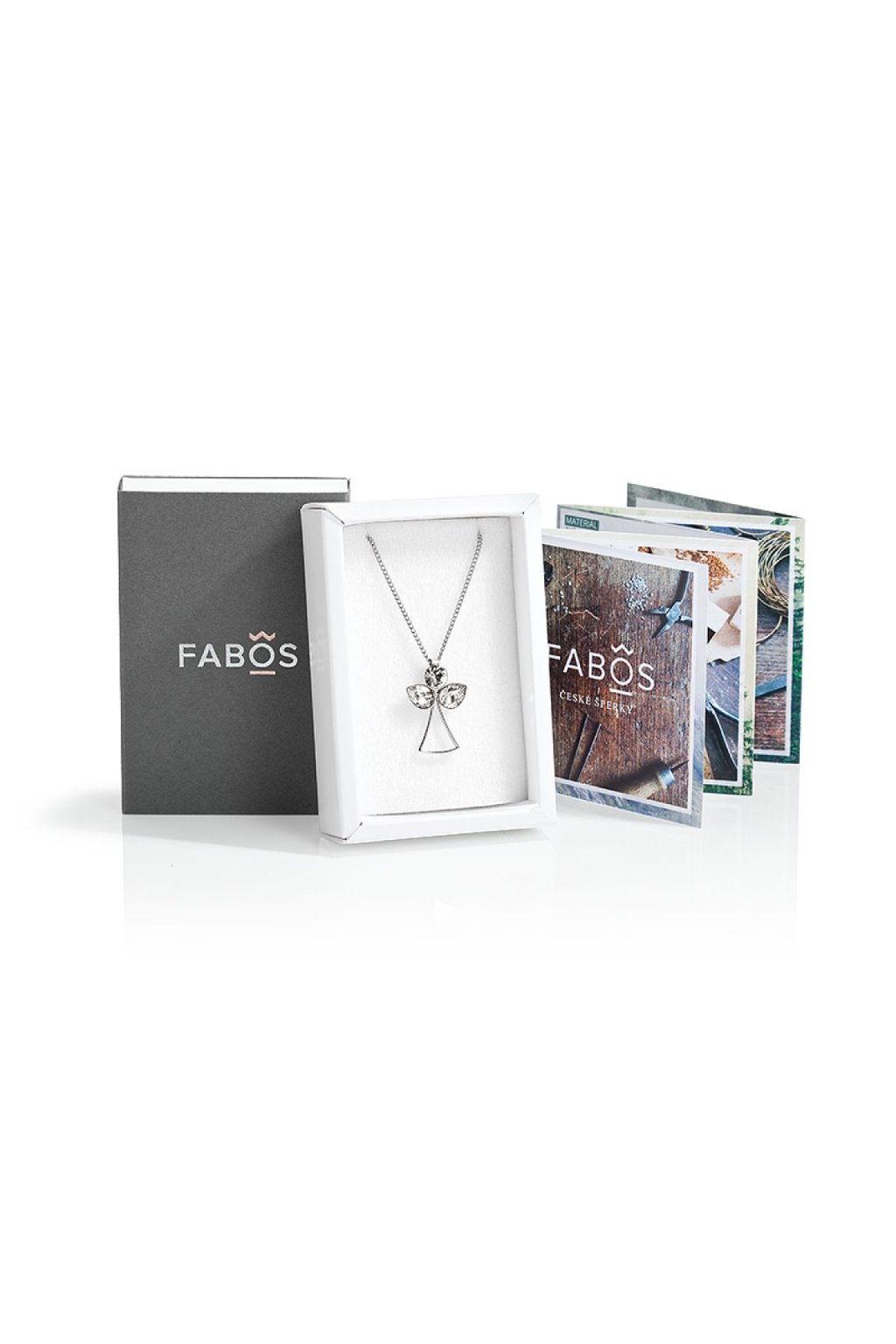 Minimalistický, ručně vyráběný náhrdelník z českých krystalů v čiré (crystal) barvě. Design andílka vychází z našich originálních minulých vzorů a snaží se jít více minimalistickou cestou. Andílek života je doplněn o kulatý kamínek o velikosti 6 mm a o dva kamínky ve tvaru hrušek. Velikost andělíčka je 2 x 1,5cm. Délka řetízku je 42 cm. Na konci je také prodlužovací řetízek o délce 7 cm. Náhrdelník si tak můžete nastavit přesně dle Vašich potřeb. Náhrdelník je v povrchové úpravě Rhodium, která zvyšeje jeho životnost a je hypoalergenní. Náhrdelník je navržen a vyroben v Jablonci nad Nisou firmou FABOS.