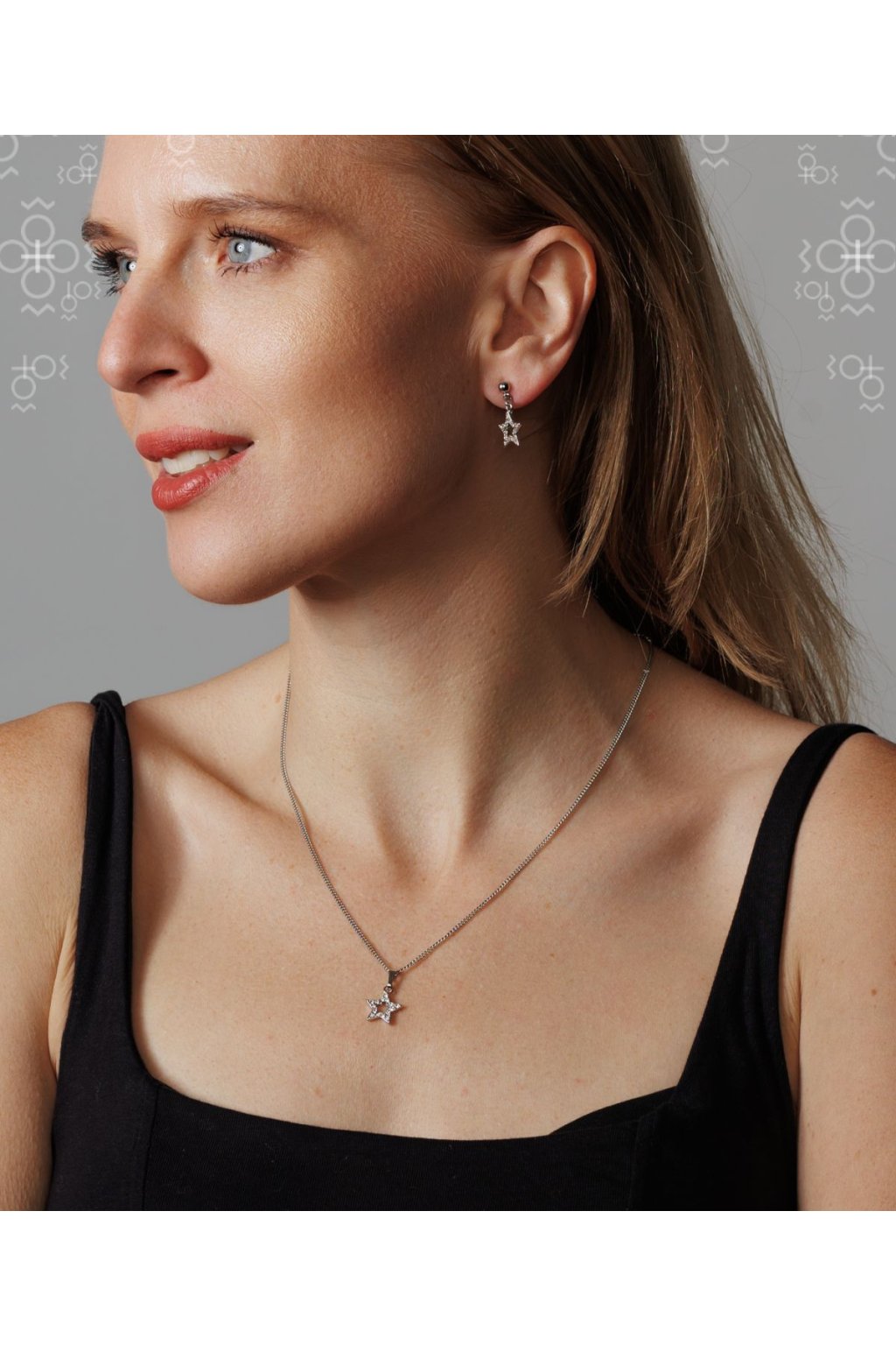 Exklusivní ručně vyráběný náhrdelník se Swarovski® crystals v čiré (crystal) barvě. Buďte za hvězdu s třpytivým náhrdelníkem v motivu hvězdy. Motiv ve velikosti cca 1,5 x 1,5 cm. Délka řetízku je 42 cm, který má na konci prodlužovací řetízek o délce 7 cm, náhrdelník si tak můžete nastavit přesně dle vašich potřeb. Náhrdelník je v povrchové úpravě Rhodium, která zvyšuje jeho životnost a je antialergenní. Náhrdelník je navržen a vyroben v Jablonci nad Nisou firmou FaBOS.