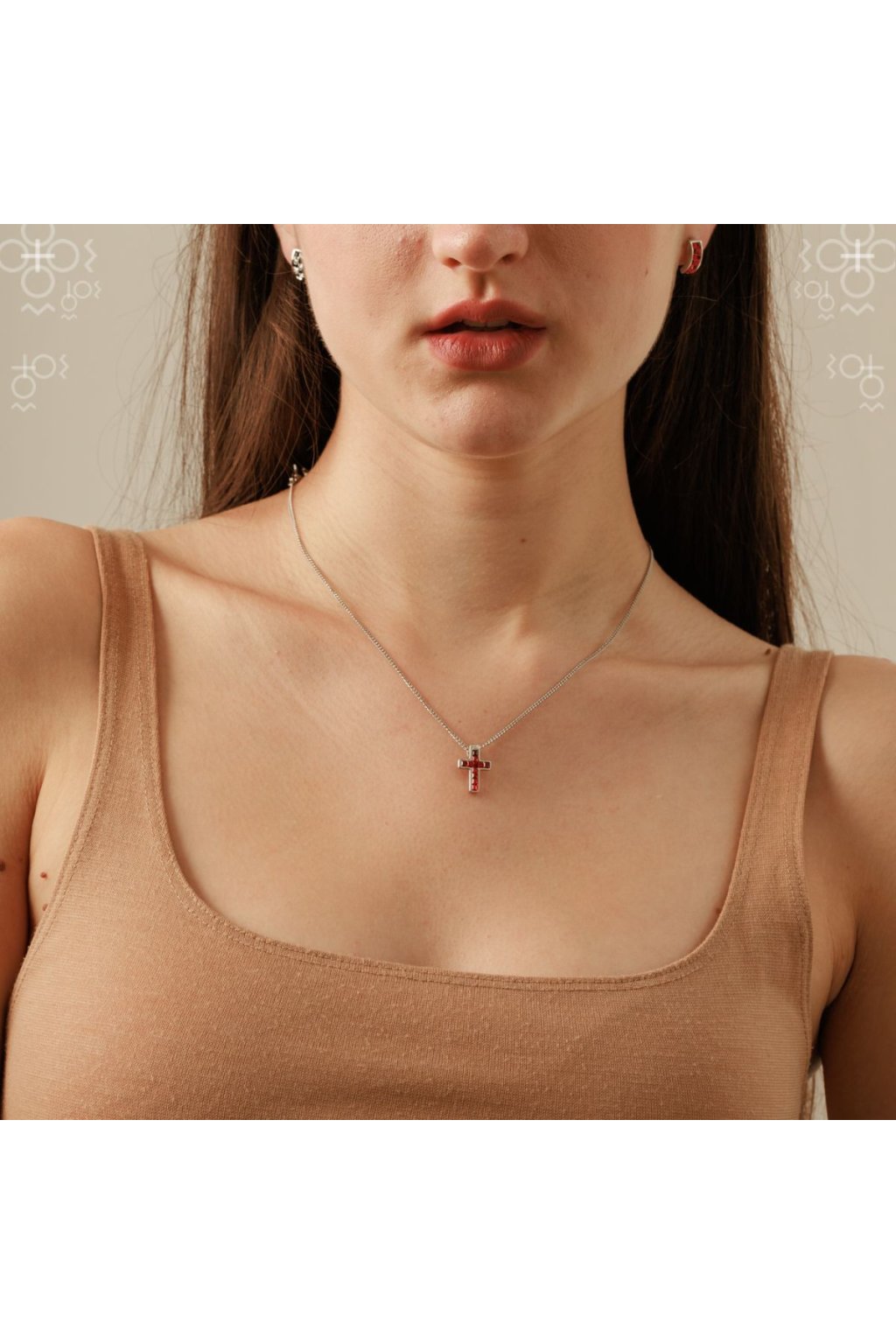 Trendy ručně vyráběný náhrdelník se Swarovski® crystals v barvě Siam a Light Siam. Malý křížek pro každou ženu, která věří v opravdovou eleganci. Velikost motivu je cca 2 x 1 cm. Délka řetízku je 42cm, který má na konci prodlužovací řetízek o délce 7cm, náhrdelník si tak můžete nastavit přesně dle Vašich potřeb. Náhrdelník je v povrchové úpravě Rhodium, která zvyšuje jeho životnost a je antialergenní. Výrobek dostanete zabalený v dárkové krabičce. Náhrdelník je navržen a vyroben v Jablonci nad Nisou firmou FaBOS.