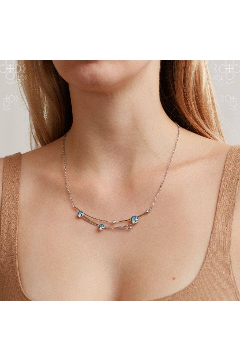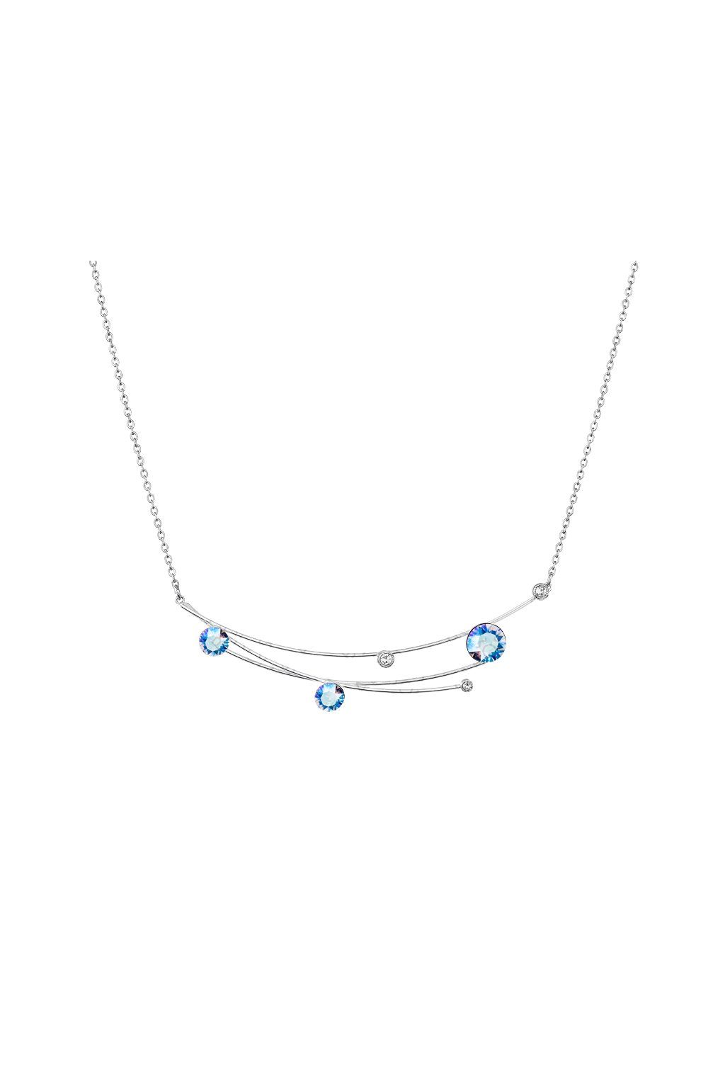 Elegantní ručně vyráběný náhrdelník se Swarovski® crystals v barvě Lt. Sapphire Shimmer . Nebeský motiv náhrdelníku posetý hvězdami v podobě blyštivých kamínků. Velikost motivu je cca 1,5 x 8 cm. Délka řetízku je 42cm, který má na konci prodlužovací řetízek o délce 7cm, náhrdelník si tak můžete nastavit přesně dle Vašich potřeb. Náhrdelník je v povrchové úpravě Rhodium, která zvyšuje jeho životnost a je antialergenní. Výrobek dostanete zabalený v dárkové krabičce. Náhrdelník je navržen a vyroben v Jablonci nad Nisou firmou FaBOS.