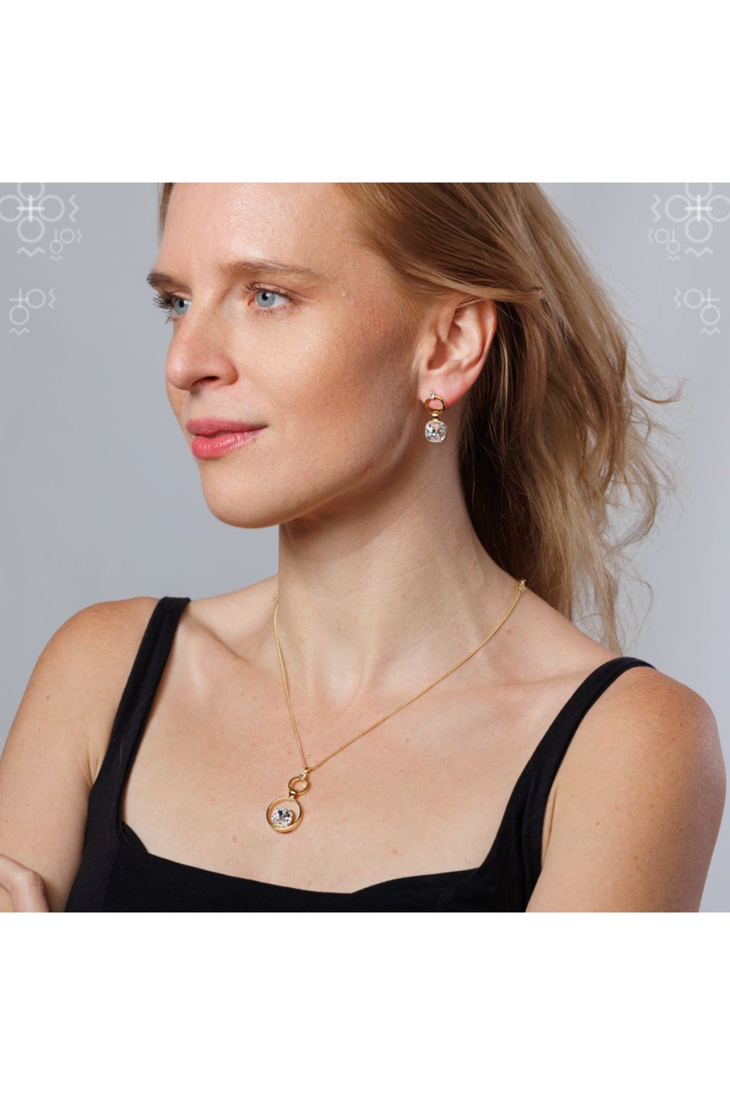 Elegantní ručně vyráběný náhrdelník se Swarovski® crystals v barvě čiré (crystal). Nevšední stylové kroužky se zaobleným čtvercovým kamenem. Velikost přívěsku je 2 x 4 cm. Délka řetízku je 41 cm, který má na konci prodlužovací řetízek o délce 7 cm, náhrdelník si tak můžete nastavit přesně dle vašich potřeb. Náhrdelník je v povrchové úpravě Zlato, která zvyšeje jeho životnost a je antialergenní. Výrobek dostanete zabalený v dárkové krabičce. Náhrdelník je navržen a vyroben v Jablonci nad Nisou firmou FaBOS.