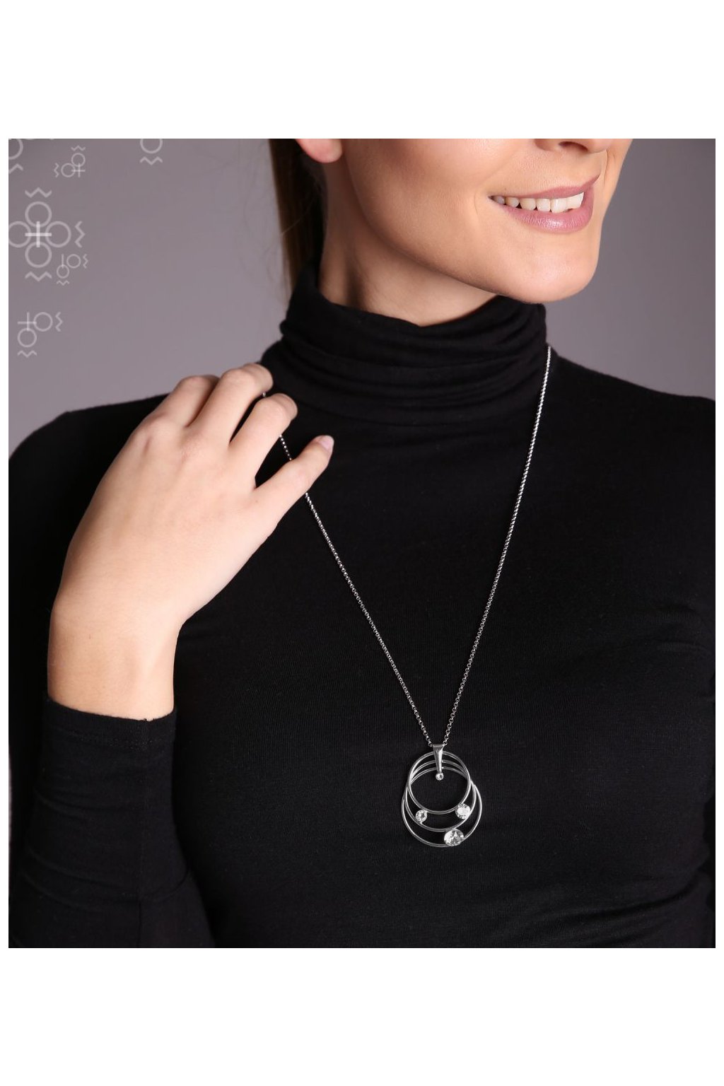 Elegantní ručně vyráběný náhrdelník se Swarovski® crystals v barvě Crystal. Protože jeden kroužek k dokonalosti nestačí, buďte jedinečná a ozdobte si den. Velikost motivu je 4,5 x 3,5 cm. Délka řetízku je 70cm, který má na konci prodlužovací řetízek o délce 7cm, náhrdelník si tak můžete nastavit přesně dle Vašich potřeb. Náhrdelník je v povrchové úpravě Rhodium, která zvyšuje jeho životnost a je antialergenní. Náhrdelník je navržen a vyroben v Jablonci nad Nisou firmou FaBOS.