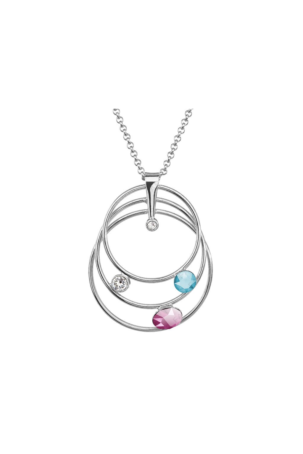 Elegantní ručně vyráběný náhrdelník se Swarovski® crystals v barvě Peony Pink, Summer Blue a Crystal. Protože jeden kroužek k dokonalosti nestačí, buďte jedinečná a ozdobte si den. Velikost motivu je 4,5 x 3,5 cm. Délka řetízku je 70cm, který má na konci prodlužovací řetízek o délce 7cm, náhrdelník si tak můžete nastavit přesně dle Vašich potřeb. Náhrdelník je v povrchové úpravě Rhodium, která zvyšuje jeho životnost a je antialergenní. Náhrdelník je navržen a vyroben v Jablonci nad Nisou firmou FaBOS.
