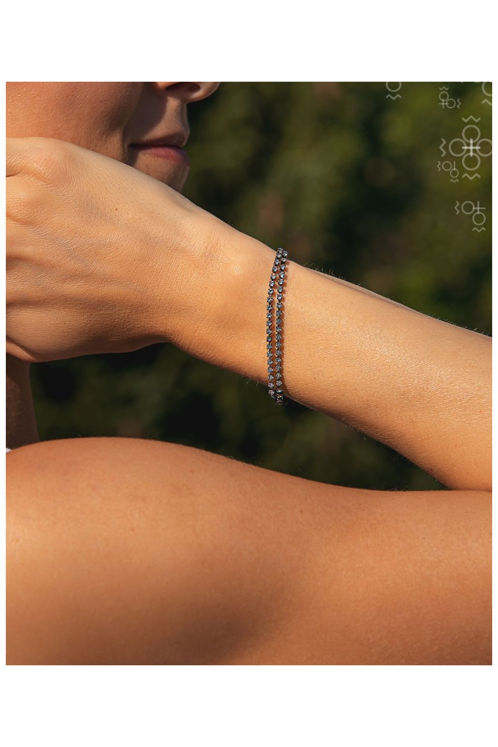 Exkluzivní náramek v tmavé úpravě je posetý drobnými krystalky v čiré barvě a skvěle doplňuje náušnice se stejným motivem. Společně tak tvoří dokonalý komplet. Blyštivý motiv zaručeně přitáhne pozornost Vašeho okolí, a je tak ideálním doplňkem pro zvláštní příležitosti. Náramek se zrodil v dílně jablonecké firmy FABOS. Právě zde, v srdci Jizerských hor, vznikají ručně vyráběné šperky a doplňky s úctou k tradiční jablonecké bižuterii.Celková délka náramku je 15 cm a lze jej přidáním zapínání prodloužit o další 2 cm. Náramek má povrchovou úpravu Rhutenium, která mu dodává charakteristický tmavší vzhled. Tato úprava výrazně zvyšuje životnost šperku, nečerná, a navíc je hypoalergenní. Výrobek od nás obdržíte zabalený v elegantní dárkové krabičce společně s certifikátem dokládajícím původ šperku a návodem, jak o něj správně pečovat.