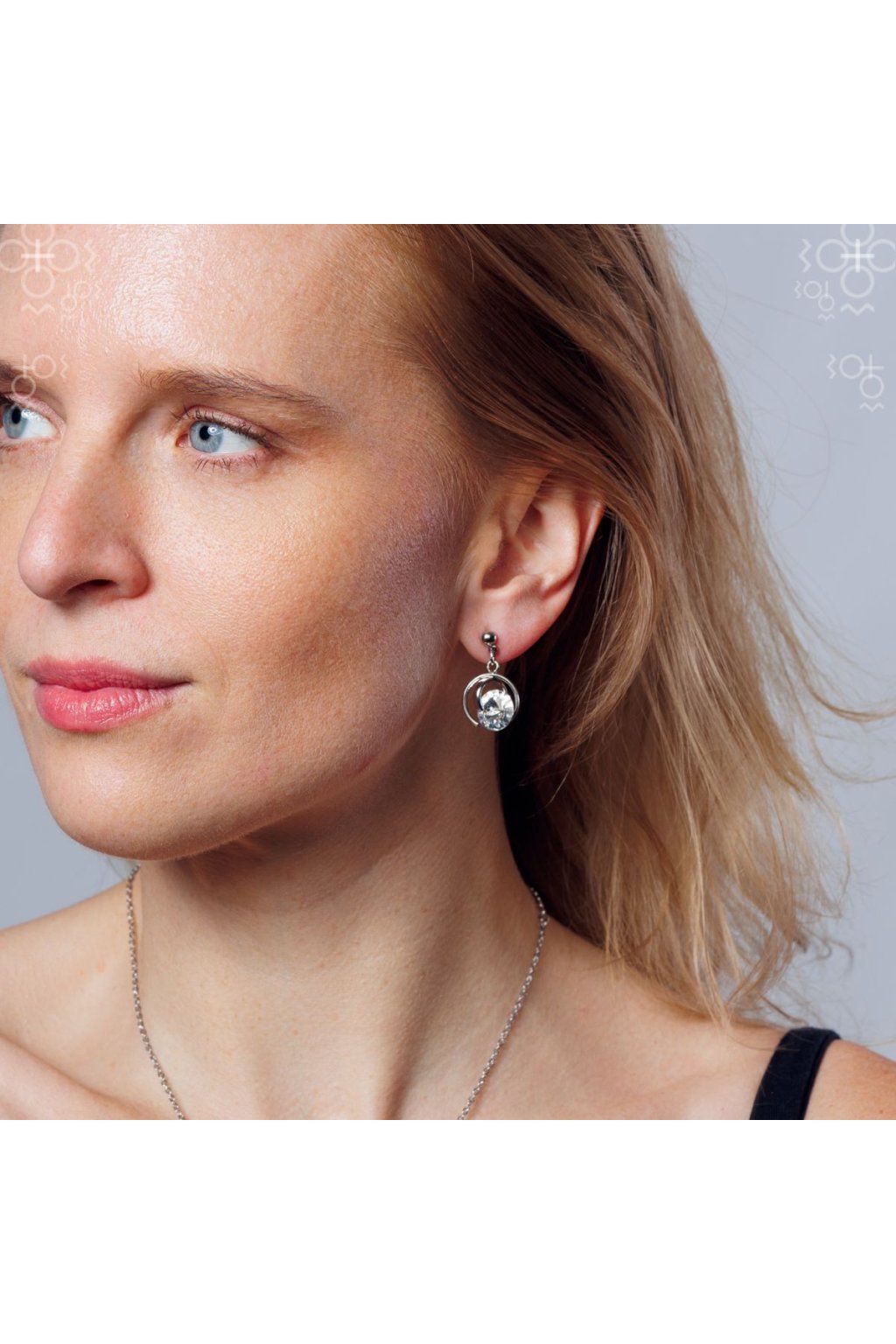 Elegantní ručně vyráběné náušnice se Swarovski® crystals v barvě Crystal. Kroucený design vychází z jednoduchosti výbrusu kamene rivoli. Velikost motivu je cca 3 x 1,5 cm. Náušnice se zapíná přes titanový dřík přímo do ucha se zarážkou ze zdravotně nezávadného silikonu. Náušnice jsou v povrchové úpravě Rhodium, která zvyšuje jejich životnost a je antialergenní. Výrobek dostanete zabalený v dárkové krabičce. Náušnice jsou navrženy a vyrobeny v Jablonci nad Nisou firmou FaBOS.