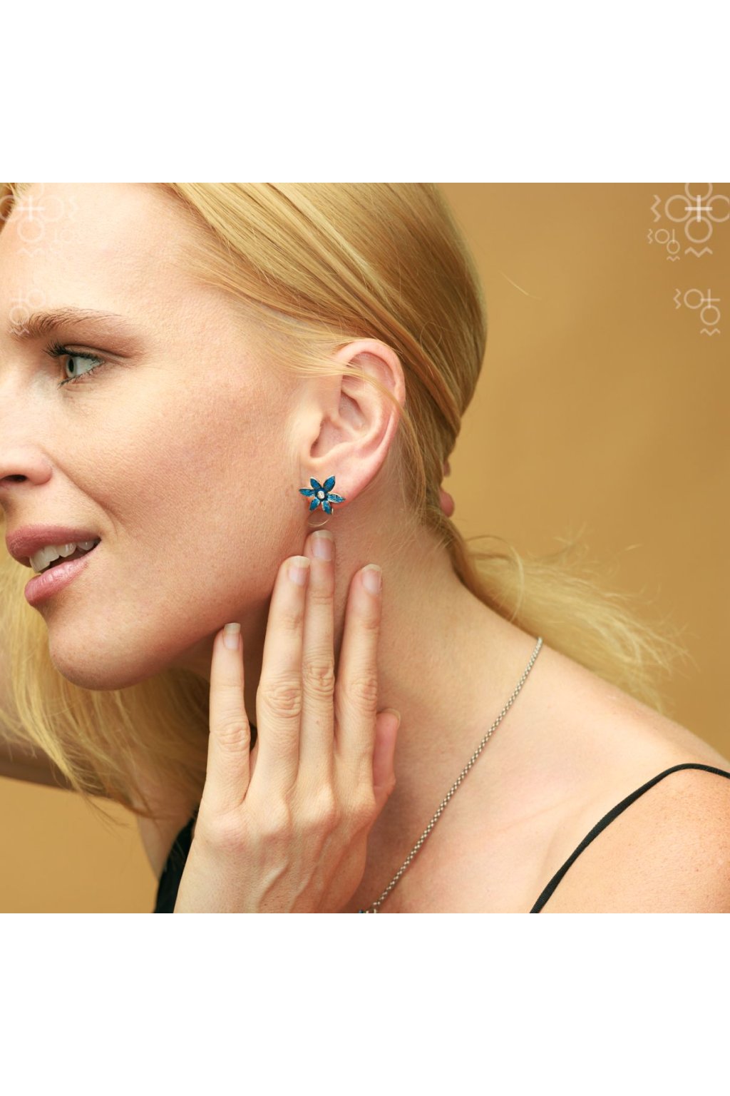 Krásné, ručně malované náušnice v motivu kytičky jsou nezbytným doplňkem nejen do slunečných letních dnů. Ve středu kytičky je čirý kamínek, díky kterému se náušnice decentně blýskají. Velikost motivu je 17 x 17 mm. Náušnice se zapíná přes titanový dřík přímo do ucha se zarážkou ze zdravotně nezávadného silikonu. Náušnice jsou v povrchové úpravě Rhodium, která zvyšuje jejich životnost a jsou antialergenní. Výrobek dostanete zabalený v dárkové krabičce. Náušnice jsou navrženy a vyrobeny v Jablonci nad Nisou firmou FaBOS.