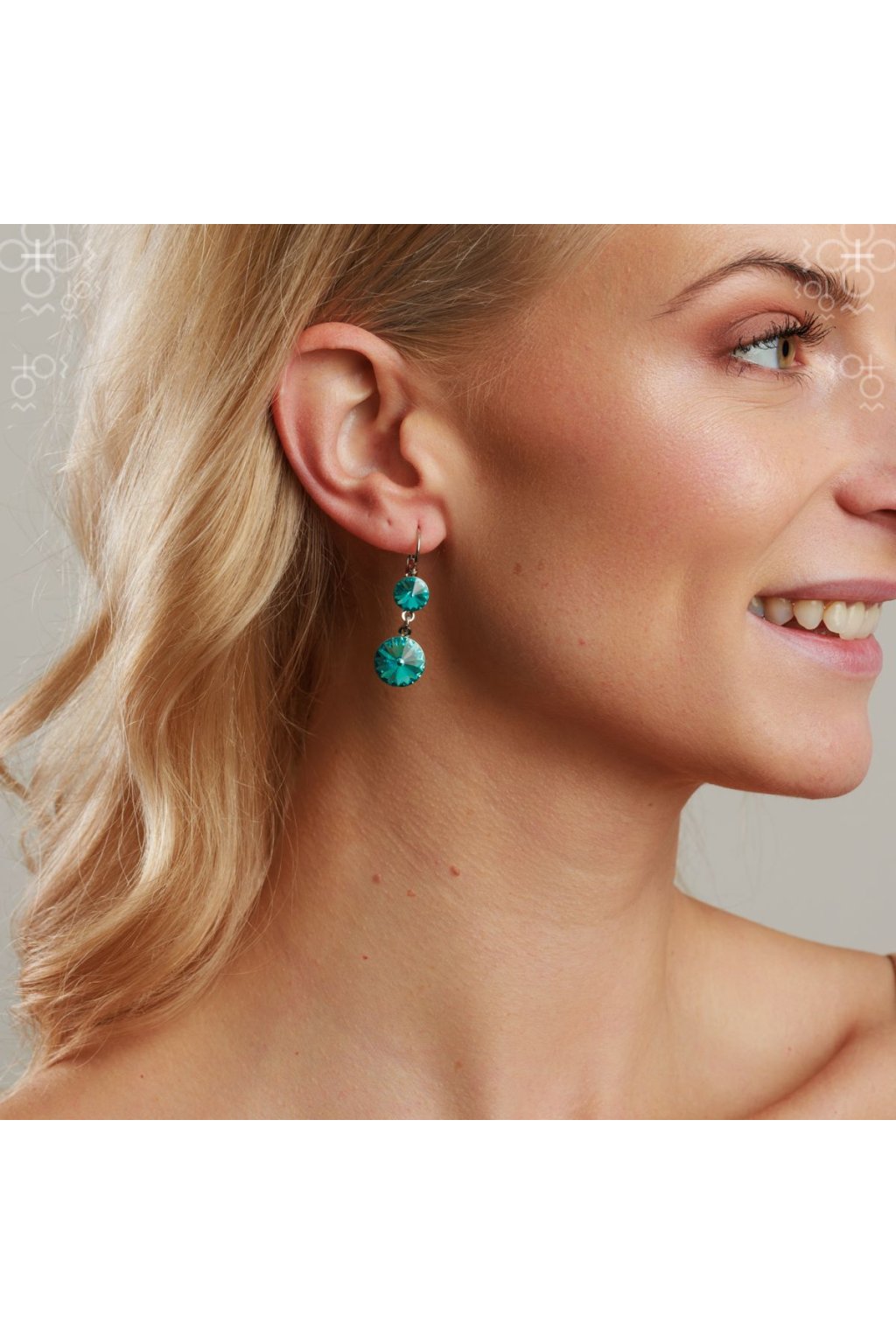 Elegantní ručně vyráběné náušnice se Swarovski® crystals v barvě Turquoise. Dvě rivoli pod sebou ve velikosti 2x4 cm. Náušnice se zapíná přes zavírací háček do ucha. Náušnice jsou v povrchové úpravě Rhodium, která zvyšuje jejich životnost a je antialergenní. Výrobek dostanete zabalený v dárkové krabičce. Náušnice jsou navrženy a vyrobeny v Jablonci nad Nisou firmou HGM.